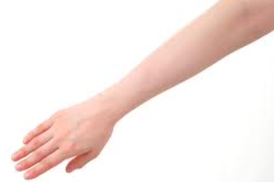 指の筋肉は沢山ありますが、実は指の曲げる筋肉は肘の横から長くのびてついています。