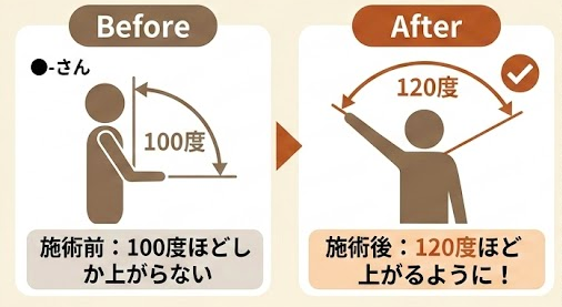 全身を施術すると、120度ほど上がるようになり今後も2週間に一回は続けることになりました。